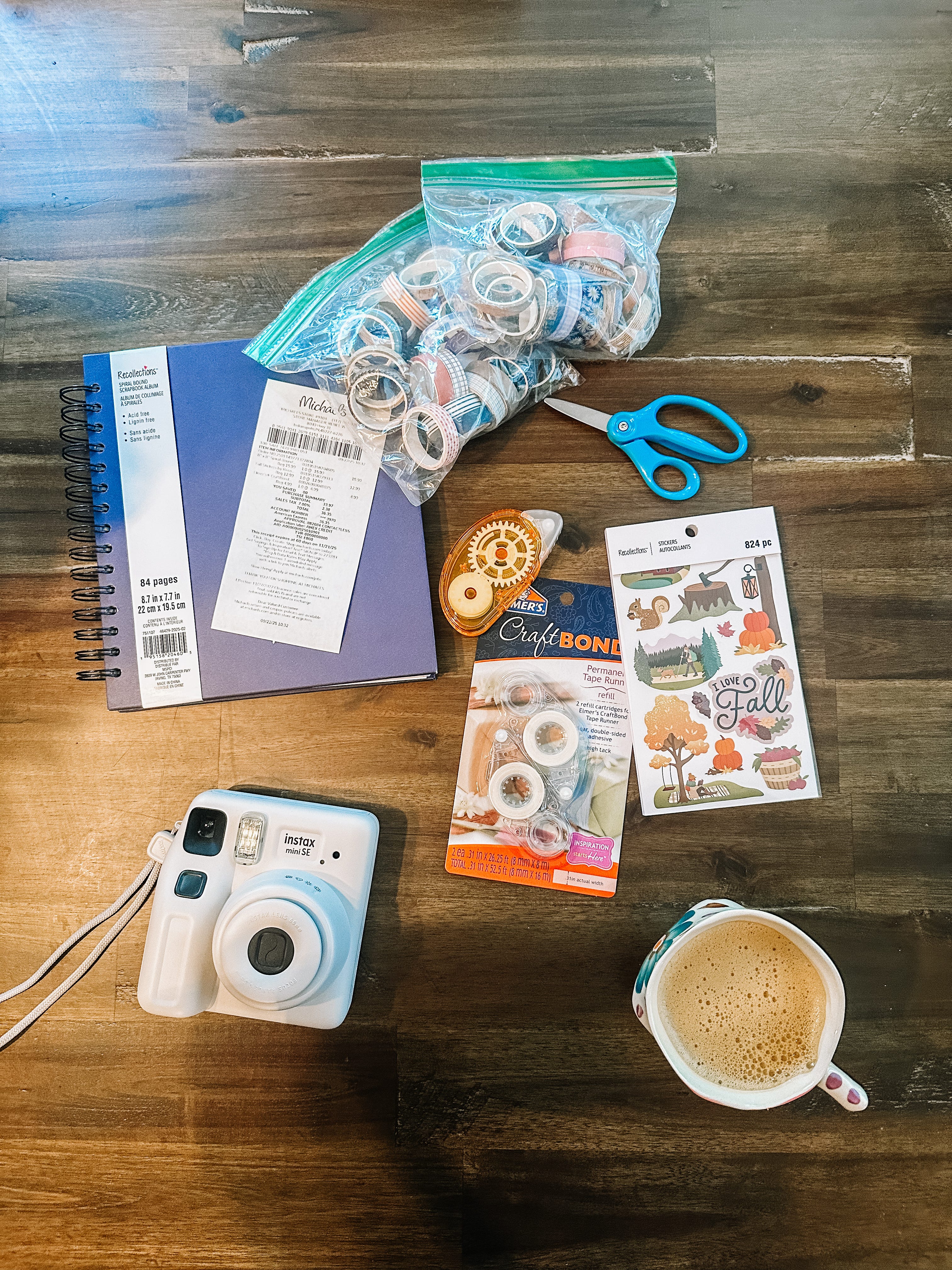 I ended up coming home with a navy blue scrapbook (Gracie chose the color, which made it extra special), as well as a book of fall-themed stickers, and some extra scrapbooking tape. On the way home, I grabbed myself a pumpkin spice latte from Starbucks and made a mental note to save the coffee sleeve as well as the sticker they put on the side of my drink, detailing what I ordered and when, to put into my seasonal scrapbook as a way to mark the first day of autumn.